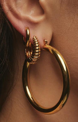 Add a little texture to your jewelry collection. The Ridged Marbella Hoops feature a medium size perfect for everyday wear, huggie snap closure, curved lever bar for comfort, unique ridged texture, lightweight feel made for 24/7 wear, and a tarnish-free and waterproof design. Stack it up with the Amalfi tube hoop or wear alone as a simple statement.