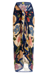 Vibrant elegance for sun-soaked days! Wrap yourself in color and charm with this floral printed sarong. Featuring intricate floral detailing in rich tones, this versatile piece adds a touch of luxury to any beach or resort look. Finished with dark navy tassels on the corners for added charm. Wear it tied at the waist or draped over the shoulders for endless vacation ready versatility.