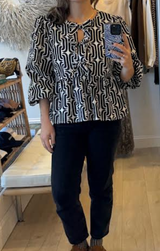 The Amaliada is a breezy blouse to carry you through almost every season. Featuring a self-tie neckline that creates cute little bows in the front, puffed sleeves that add a feminine touch, and a relaxed fit, all finished in a unique geometric print. Pair with slacks and a blazer for the office or simply style with your denim of choice!