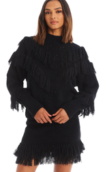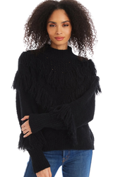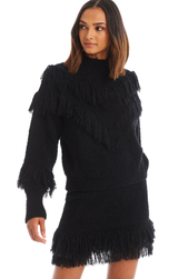 The Austin Sweater delivers chic western flare with a modern touch. Featuring a high neckline, dropped shoulders, fun fringe detailing across the bodice, relaxed fit, and fringe-accented sleeves with ribbed cuffs. Style with the Anna Mini Skirt for a fashion-forward set, or wear with your favorite jeans and sneakers.