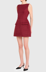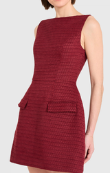 Weddings, romantic dinners and beyond. This chic fall mini features a boatneck, sleeveless deign, softly rounded skirt, and flap pockets. The deep russet color is perfect for your next fall wedding or party weekend.