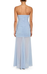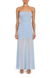 The Leo Dress is designed to turn heads with every wear. Featuring a strapless neckline, a curve-hugging fit, invisible back zipper, and a sheer maxi skirt for a little added drama. Style with sleek heels and a clutch for your next night out!