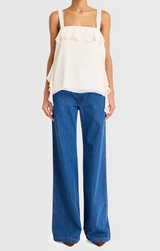 The Pinot Top is as sweet as summer wine. Featuring a flowy relaxed fit, slightly cropped length, charming ruffles that cascade down the sides of the garment, and self-tie over shoulder straps that create a little bow. Dress it down with denim or pair it with a maxi skirt and a beaded handbag for a more polished look!