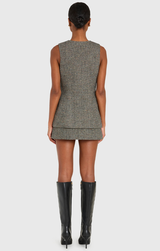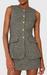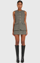 There is something about a tweed mini that will never go out of style. This polished piece features vintage-inspired gold buttons, a high crew neck and a faux blazer hem detail. With a body hugging fit this is equal parts flattering as it is professional. Style with boots and a long coat.