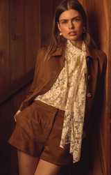 Chic faux suede perfect for the transitional seasons. The Jude Short features pleated front detailing, functional pockets for your essentials, concealed zipper and flat hook closure, and fully lined construction. Pair with the Sorine Jacket for a sweet transitional set, or simply top with a cotton blouse.