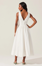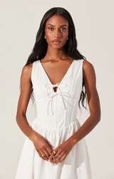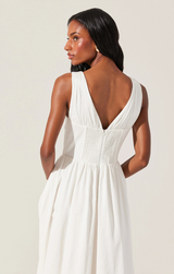 Effortlessly elegant and always flattering. The Maili dress features a V-neck with lace-up detail at the bust, structured boning throughout the bodice, a smocked back, concealed back zipper, functional side pockets, and a gathered skirt that creates a full silhouette. Pair with a statement purse, heels, and gold jewelry for your next summer outing!