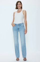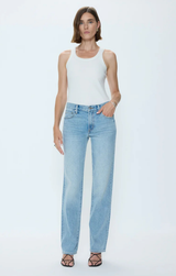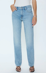 Your new favorite jeans are here and ready to be styled. Featuring a straight-leg, mid rise waist, light vintage wash and a structured non-stretch denim. Style with a clean tee and slides or a silky blouse and heels.