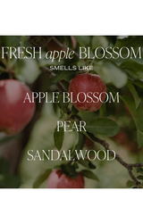 Fragrant apple blossoms, sweet tropical fruits, and delicate florals combine for a refreshing and fruity fragrance. Enjoy the apple, peach, citrus and pineapple scent notes blended with the light floral notes of Hyacinth, Jasmine, and Lily. Our Fresh Apple Blossom scent is grounded with sandalwood, rosewood, and musk for a complex fragrance you're sure to love.