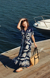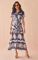A updated version of the classic summer maxi dress by Omika. Featuring short sleeves, collared neckline, button up front, tie waist and the best selling print. Style with heels and a clutch for a party ready look.
