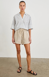 Super comfy linen meets endless styling potential. The Foster short features a mid-length high-rise silhouette, a lightweight and breezy linen construction, and a paperbag waist with an adjustable corded drawstring and spacious front pockets. Style with anything from tanks to tees to summer blouses!