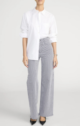 The nautical version of our fan favorite denim by Frame is here and ready for the warmer seasons. Featuring a flattering high-rise waist, fitted hip, and subtle wide-leg flare that hits at the floor. Style with a crisp white button up and heels for an office to dinner look.