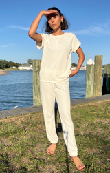 The loungewear essential that never goes out of style. Featuring a comfortable drawstring waistband for a custom fit, a classic tapered jogger-style leg, and a breathable feel that still offers a touch of warmth. Style with the Boatneck Roll Sleeve Raglan Top for an easy look with a polished feel, or simply top with a clean cut tee!