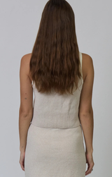 A moment for the cute vest trend! This sweet knit is made of soft tweed yarn, collared neck, button up front, ribbed hem and a slightly cropped length. Style with tailored trousers and loafers for a polished everyday look.