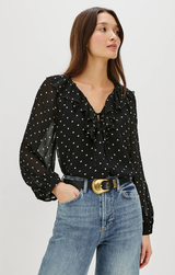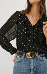 The Honora lends a charming touch to every look. Featuring a ruffled neckline, long sleeves, self-tie closures, and a partial lining for maximum comfort, all finished in a timeless polka dot print. Pair with slacks and a blazer for the office or dress it down with jeans and sneakers!
