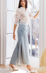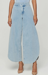 Chic and polished in these  high-rise, ankle-length cocoon jeans. Made from a soft cotton and featuring high side slits and an ultra flowy fit. Style with a fitted tank and heels for a going out look.