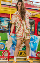 Effortless and versatile, these shorts are designed for everyday ease. Featuring an elastic waistband for a comfortable, relaxed fit, they include both side and back pockets for practical wear. The bold placement print adds a playful touch, perfect for pairing with the matching Ali Fiore shirt or your favorite basics.