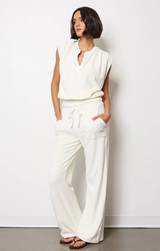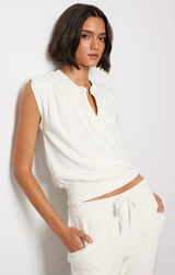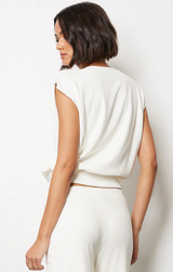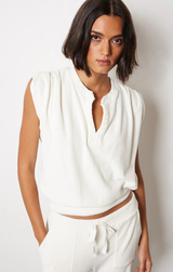 This plush top is ready to work overtime this season! Featuring a classic split neckline, sleeveless silhouette, relaxed fit with an elastic ribbed hem, and a super soft fabrication. Style with the Terry Wide Leg Pant for a perfect pairing, or style with your denim of choice.