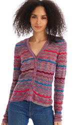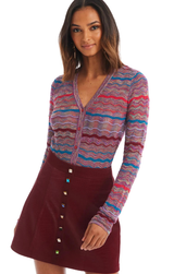 A flattering and classic style cardi in a jewel inspired color palette. Featuring a button up front, long sleeves, v neckline, and a bold jewel and ruby colors. Style with a denim skirt and knee high boots for a fresh fall look.