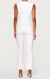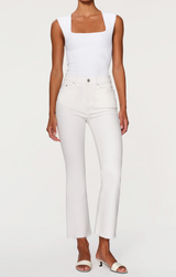 Best seller alert! This is essential denim for spring and summer. Featuring a high rise waist, crop boot and raw hem. The white is a fresh take on your everyday denim and is easy to wear and looks effortless when styled with a colorful blouse or a classic oversize tee.