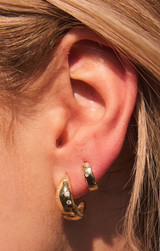 Sweet and subtle, the Dottie Huggies feature a tiny beaded-dot design along a sleek mini hoop. They hug the ear closely for a soft, polished look. Perfect for everyday wear and effortless stacking.