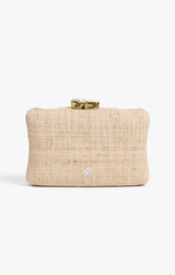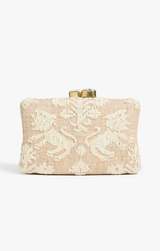 This beautifully crafted straw bag combines artisinal handwoven techniques with exquisite hand-embroidered details. Featuring a lion motif accented with a precious stone closure, it balances classic charm with sophisticated elegance. The interior is fully lined with soft cotton, and a gold metal chain shoulder strap allows for versatile styling.