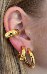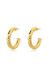 Une créole classique avec une lueur dorée, parfaite pour les fêtes de fin d'année. Doté d'un imprimé 18 carats plaqué sur acier inoxydable. Portez-le avec un look de fête habillé ou avec un t-shirt simple et une tenue en jean.