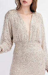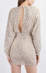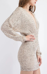 - V Neck Long Sleeve Sequin Mini Dress