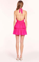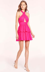 Un véritable look affirmé pour votre prochain événement formel d’été ! Doté d'un décolleté dos nu croisé sexy sur le devant, d'une mini découpe chic sur le devant, d'un dos ouvert, d'une jupe à volants à plusieurs niveaux et d'une mini longueur flatteuse et fluide. Portez-le avec des talons transparents à lanières et une pochette de soirée pour un look « vision en rose » raffiné et stylé.