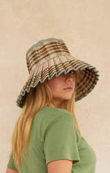 Inspired by serene shores and timeless style, the Lake Como Island Capri hat evokes the beauty of Lake Como, featuring white, bisque-brown, and lagoon-green threads woven horizontally through the hand dyed fibers. All finished with soft pale-green fabric trimming, its a refreshing take on classic coastal charm.
