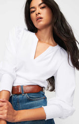 Votre nouveau incontournable pour… partout. Modèle doté d'épaules exagérées, de poignets smockés chic et d'une encolure crantée. Portez-le avec votre denim préféré pour un look décontracté le plus simple à ce jour.