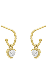 Made from sterling silver and finished with 18k gold plating, the Amora Earrings are heart shaped huggies that feature cubic zirconia and are hypoallergenic, charming and effortlessly cute!