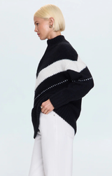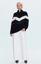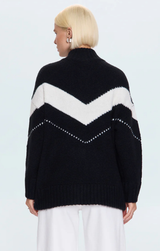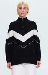 A classic knit with striking graphic detailing, the Arden Sweater features a relaxed silhouette with a half-zip neckline for easy styling. The bold chevron colorblock design adds contrast while maintaining a timeless, versatile feel perfect for everyday wear.