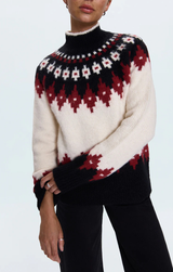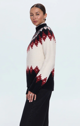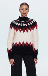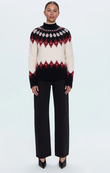 The Astrid Pullover refreshes the classic Fair Isle with bold tones and an effortless pullover silhouette that feels both cozy and refined. Crafted from a soft, blend of acrylic, wool, alpaca, and nylon, it provides warmth with an elevated look.