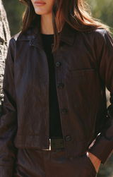 Relaxed yet very refined, the Crop Pocket Button Down is a great layering peice designed to elevate everyday looks. Crafted from buttery soft faux leather, this piece offers a luxe feel with just the right amount of structure, making it easy to dress up or down.