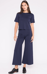 - Ponte Knit Cropped Wide Leg Pant