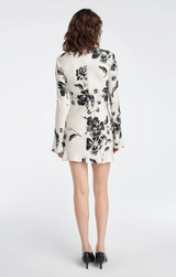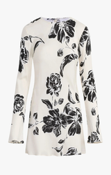 We're madly in love with this mini dress. Featuring a column-style silhouette, long bell-shaped sleeves, and mini length, all constructed in a bias-cut viscose-sateen fabric that drapes the body effortlessly. Pair with heels and a mini bag for a chic spring and summer look!
