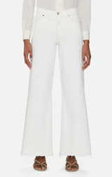 This best-selling and iconic silhouette is back in a summer-ready shade! Featuring a comfortable high-rise waist, fitted hip, and subtle wide-leg flare with raw edge, all carefully crafted from a stretch cotton modal blend for the softest wear. Style with spring knits, blouses, and tanks alike!