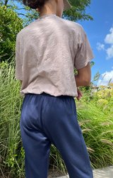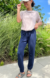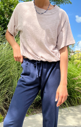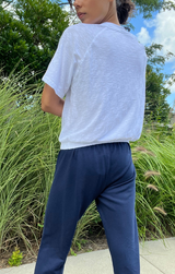 A simple top that will take you right into the new season. Featuring a crew neckline, raglan sleeves, bubble hem waist and a lightweight cotton. Style with tie waist joggers and sneakers.