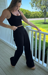 These easy pants deliver flattering comfort that you won't want to miss. Featuring a soft beach gauze construction, a relaxed leg, and an adjustable fold-over waistband for super easy wear. Style with the Spaghetti Strap Cami for an elegant but simple summer set, or simply throw on over your favorite swimsuit for breathable beach wear!