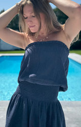 This breezy beach dress is designed to deliver all day-comfort, all season long! Featuring a classic tube top style neckline and a smocked drop waistline, constructed in lightweight beach gauze with a stretchy fit that slips on with ease. Wear it as a cover-up over your swimsuit of choice or style as a casual dress with gold jewelry!