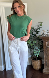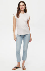 Une version moderne du t-shirt musclé classique ! Ce basique de tous les jours présente un col rond, des épaules allongées, une coupe décontractée et un jersey de coton vintage. À porter avec une paire de jeans de tous les jours et des sandales pour une ambiance décontractée propre et raffinée.