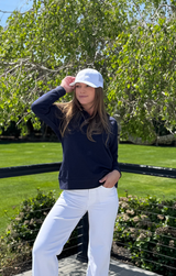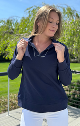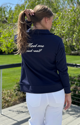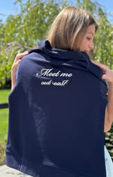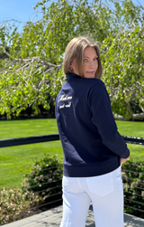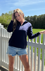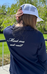 Out East is where you belong. This comfy summer sweatshirt is perfect to throw on after a long day at the beach. Featuring a quarter zip front, long sleeves and a relaxed fit. Style over your bathing suit with shorts or wear with white denim and slides for a laid back summer vibe.