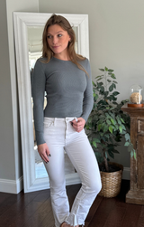This butter-soft basic is a closet essential for a reason! Featuring a cozy-chic ribbed knit construction, a classic crew neckline, long sleeves, and a fitted silhouette that hugs the body and flatters. Offered in multiple different colorways, this versatile crew sweater is ready to be paired with anything- we love layering under dresses it for a little extra warmth!