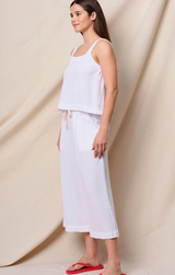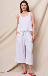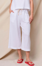 Breezy gauze just got better. These comfortable bottoms feature a drawstring waist for your perfect fit, a cropped length, super soft feel, and a relaxed fit, Pair with the Cross Back Swing Top for a sweet summer set, or simply top with a tee.