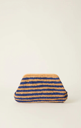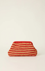 This chic summer bag makes a lasting impression. Featuring a hinged frame closure, raffia straw construction, and eye-catching striping. Pair with denim and a tee or your favorite summer dress!