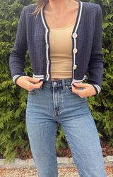 Central Park West's iconic mesh cardigan is back in a fresh new colorway. Featuring a functional button-front closure, classic V neckline, length that ends just above the hip, long sleeves, and preppy varsity-style striping at the neckline, front closure, cuffs, and hem. Wear closed as a top with your denim of choice or style it open over a clean-cut tee.