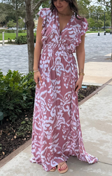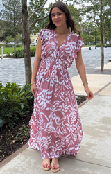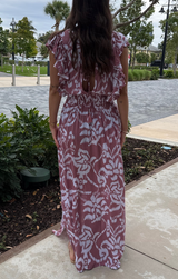 Twirl into adventure in the Dahlia Maxi Dress, where nomadic boho vibes meet effortless elegance. This flowy stunner features delicate flutter sleeves that dance with every step, a smocked waist for a flattering silhouette, and a graceful V-neckline. The enchanting nomadic print whispers tales of wanderlust and free-spirited style. Perfect for festival season, beach getaways, or whenever you're channeling your inner bohemian goddess.
