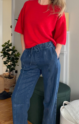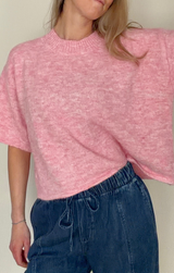 The Candy Sweater is as sweet as she sounds! Featuring a relaxed boxy fit, elbow-length sleeves, a crew neckline with a wide ribbed trim, all constructed in a mid weight knit perfect for tricky transitional weather. Pair with white denim and sneakers for a lovely look, or dress it up with trousers and jewelry!