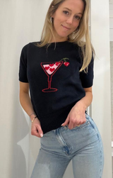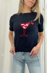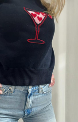 We're totally in love with this Valentine's Day-ready sweater top. Featuring a classic crew neckline, short sleeves, butter-soft knit construction, and a slightly cropped length, all finished with a sweet heart martini graphic in front. Pair with a mini handbag and wide leg denim for a perfectly sweet ensemble.