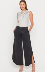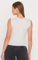 The Trina 3D Lace Combo Top features a sophisticated blend of textures with dimensional lace detailing and a smooth knit base. The sleeveless silhouette showcases a high neckline that frames the shoulders beautifully, while the fitted knit body creates a flattering, streamlined look. Perfect for layering or wearing solo, this piece transitions effortlessly from day to evening. The contrast between the delicate lace and structured knit adds visual interest and dimension to your wardrobe.